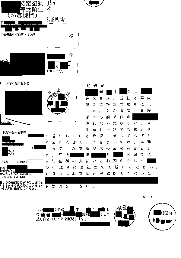 (1)電話、書面又は督促状、内容証明にて請求通知。
